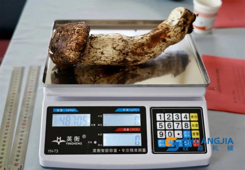 這是今天的松茸王,重487克,長(zhǎng)29厘米,個(gè)頭大,新鮮度好,歡迎直播間的朋友參與競(jìng)拍?!?/p>